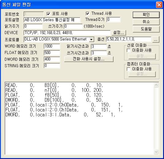 <±×¸² 3> AB LOGIX 5000 Series Ethernet Åë½Å µå¶óÀ̺êÀÇ Àбâ Ãß°¡/ÆíÁý ´ëÈ»óÀÚÀÇ ¿¹